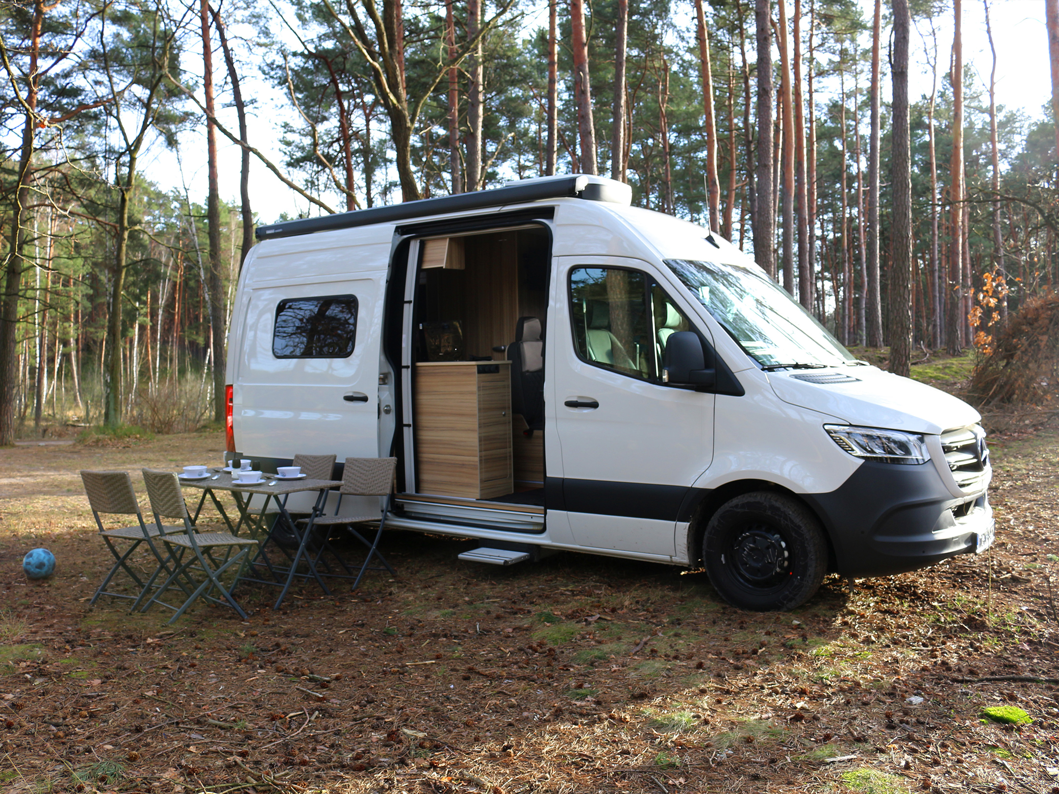 Mercedes Sprinter to idealny kamper dla czteroosobowej rodziny lub dwójki osób chcących spędzić czas na wymarzonych wakacjach w komfortowych warunkach.