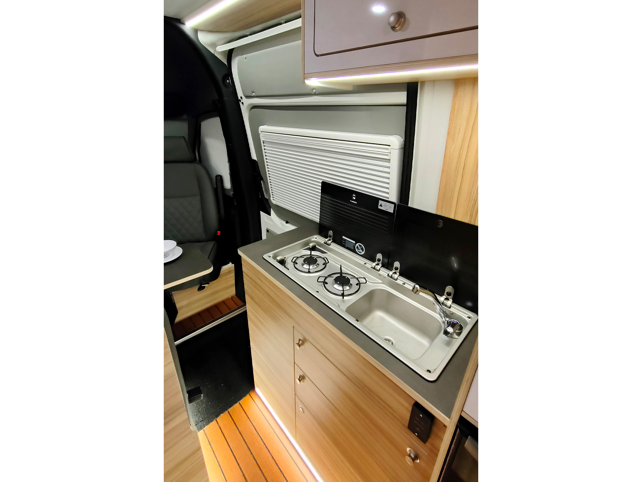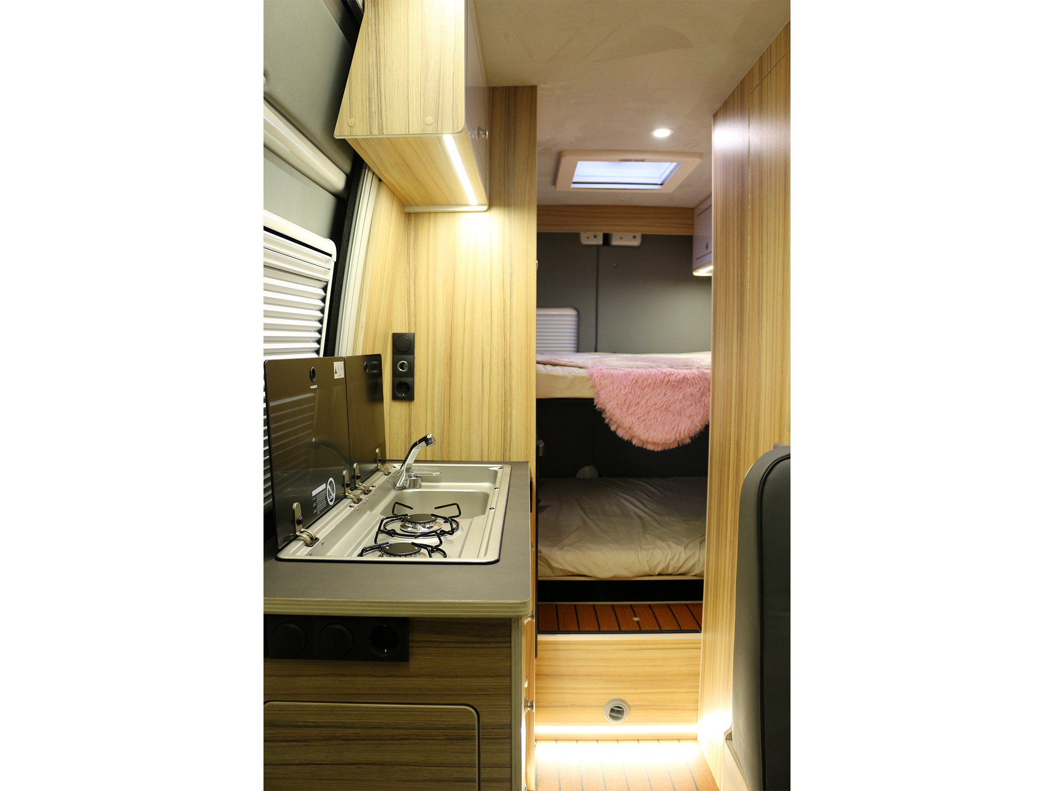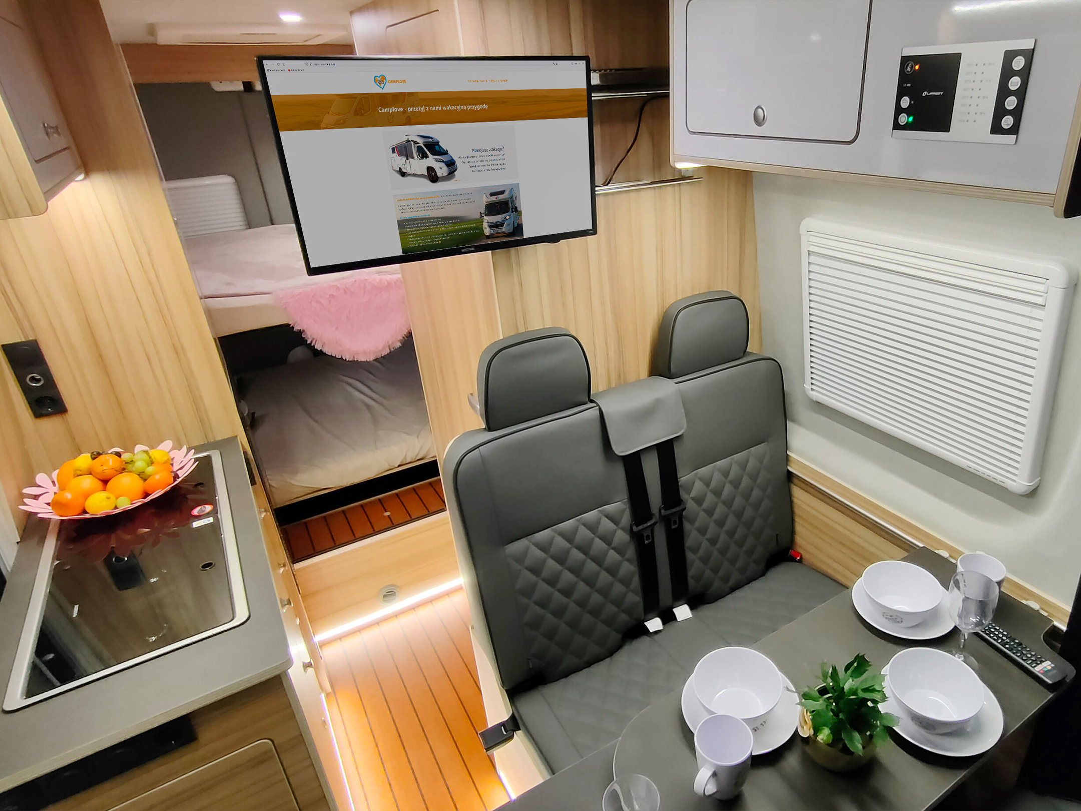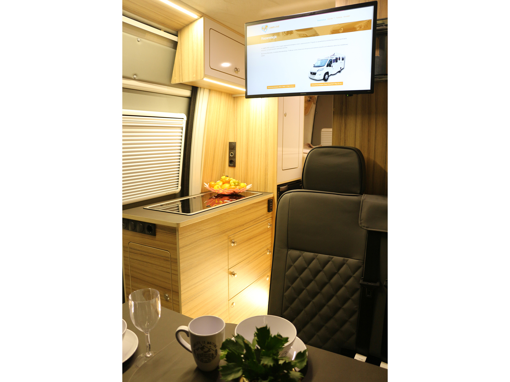 Przemyślany rozkład wnętrza pozwala na pełne wyposażenie kampera we wszystkie niezbędne wygody, przy zachowaniu niewielkich rozmiarów pojazdu. Pozwala to na łatwe manewrowanie i bezproblemowe parkowanie takim autem nawet w centrum miasta.